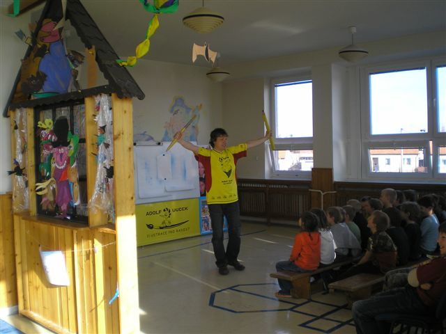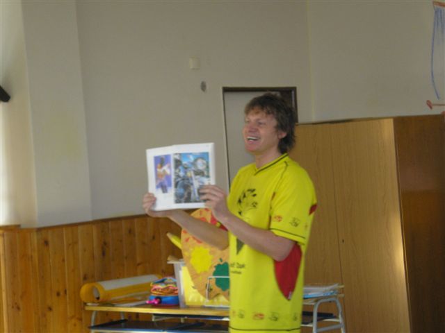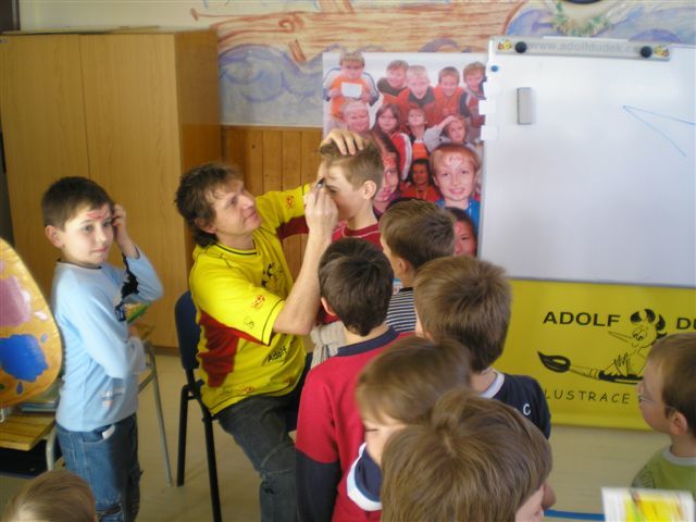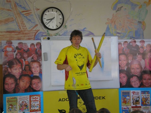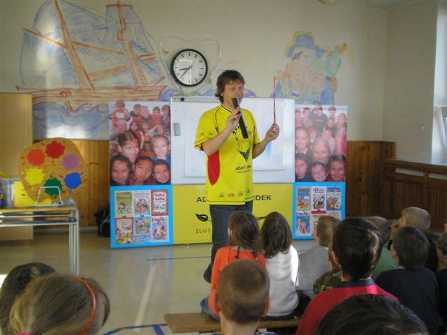 Úvod > Obec > Fotogalerie > Malíř a ilustrátor pan Adolf Dudek v ZŠ 2008